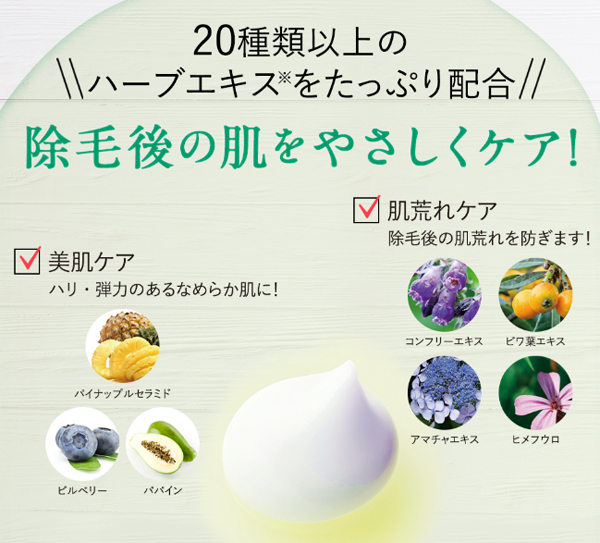 単に毛を取り除くだけでなく、除毛後の肌を美しく整える成分が凝縮されています。